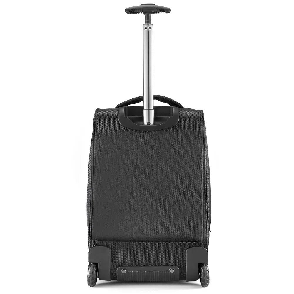 Compartimento interno de notebook de até 19 polegadas, Multi compartimentos para acessórios, e material de nylon resistente e rodas embutidas.